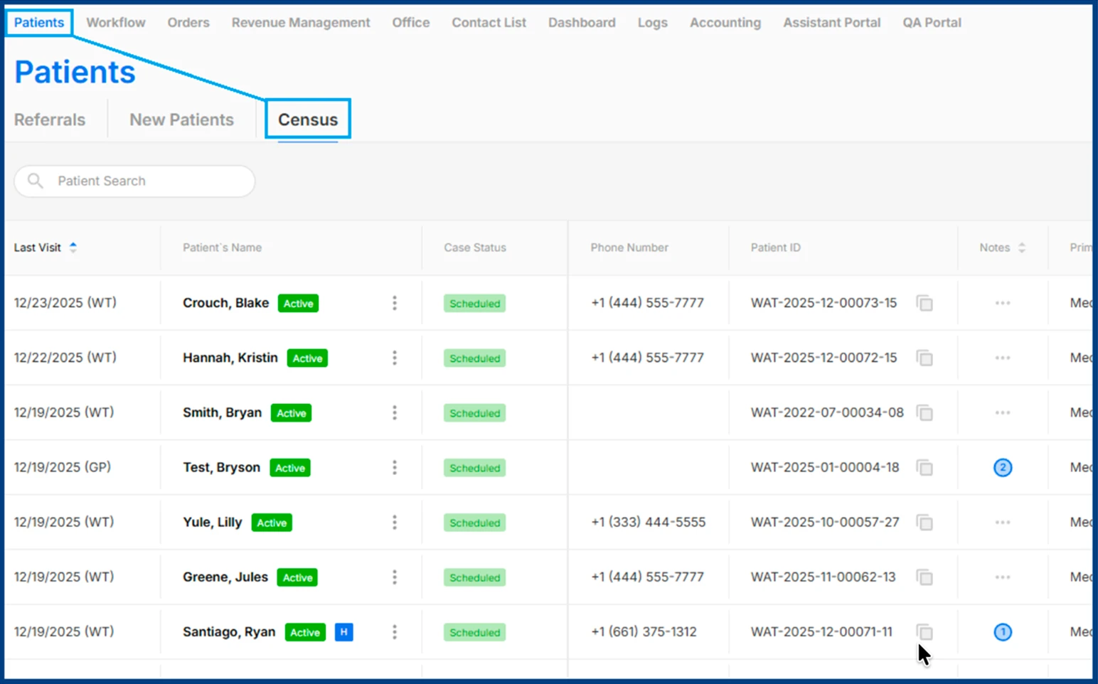 Navigate to Patients > Census