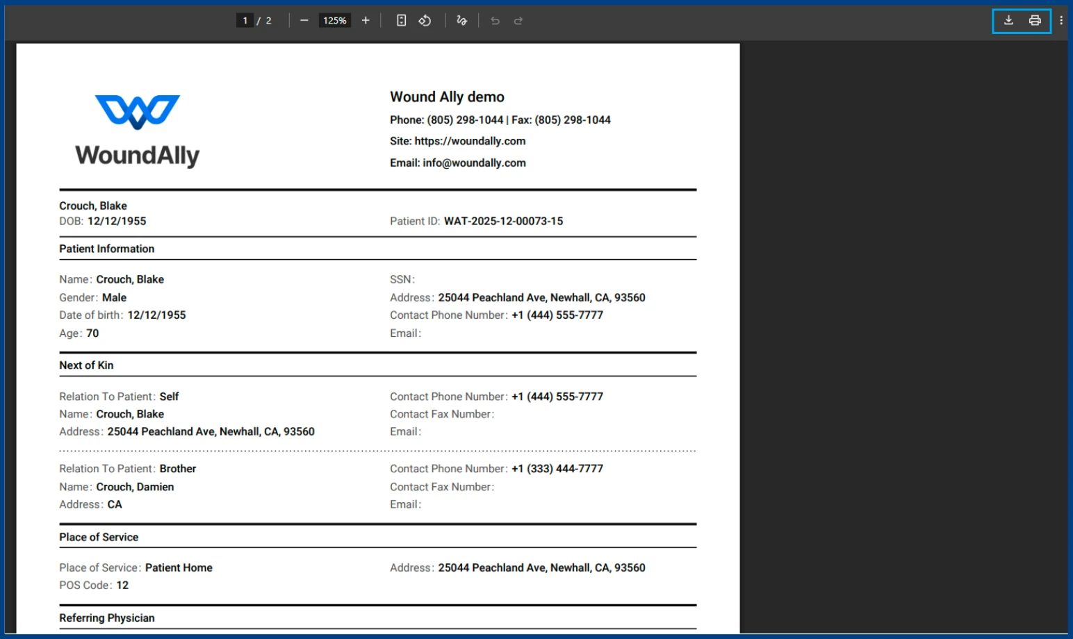 WoundAlly allows authorized users to export a single patient’s