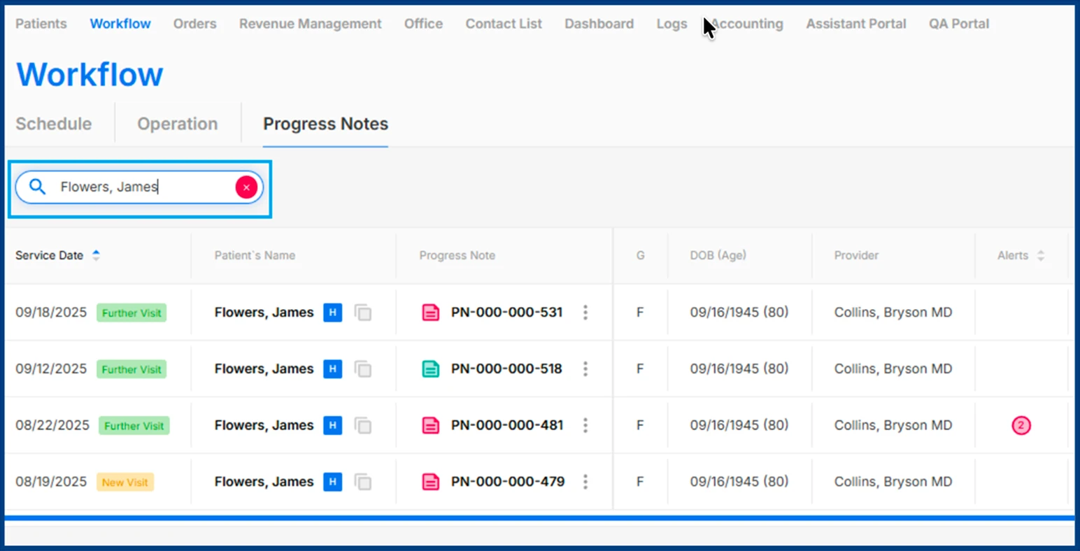 Navigate to Workflow > Progress Notes