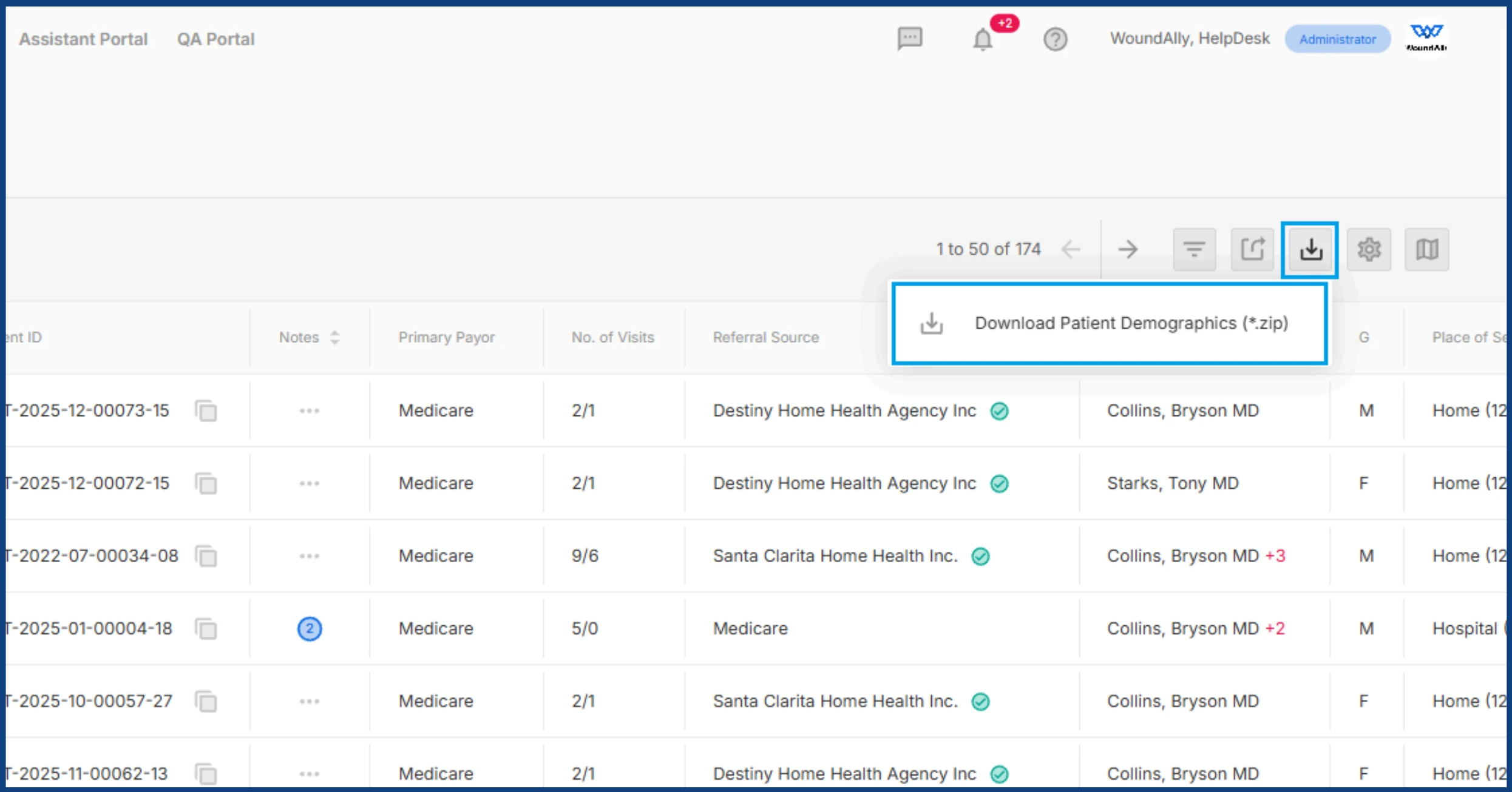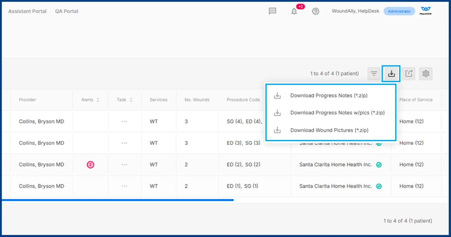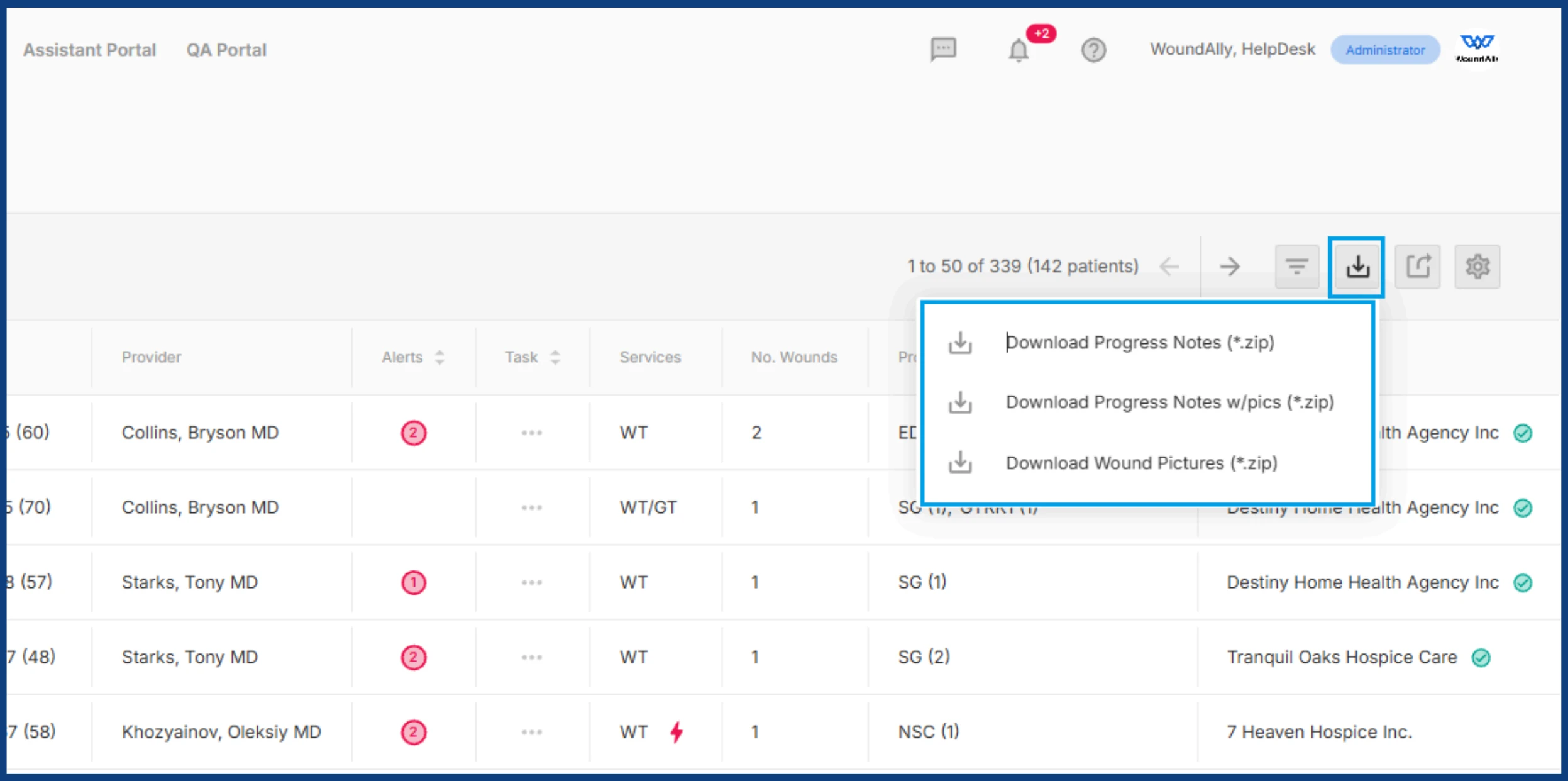 - Documents are not included in patient population (bulk-patient) exports. If document export is required, please contact WoundAlly Support.